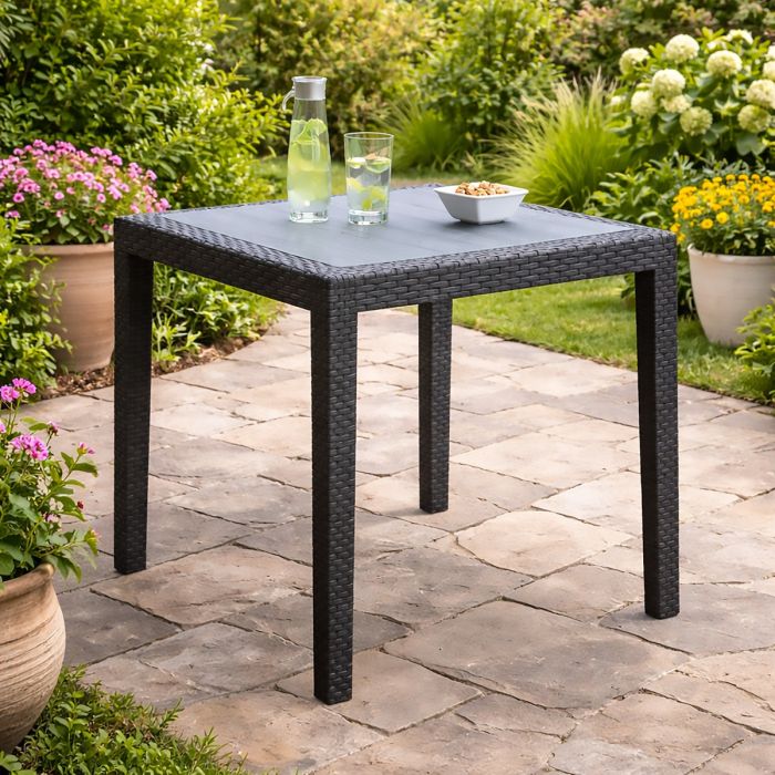 TAVOLO FISSO MOD. KING DA ESTERNO CM 79X79 POLIPROPILENE INTRECCIATO EFFETTO RATTAN ANTRACITE