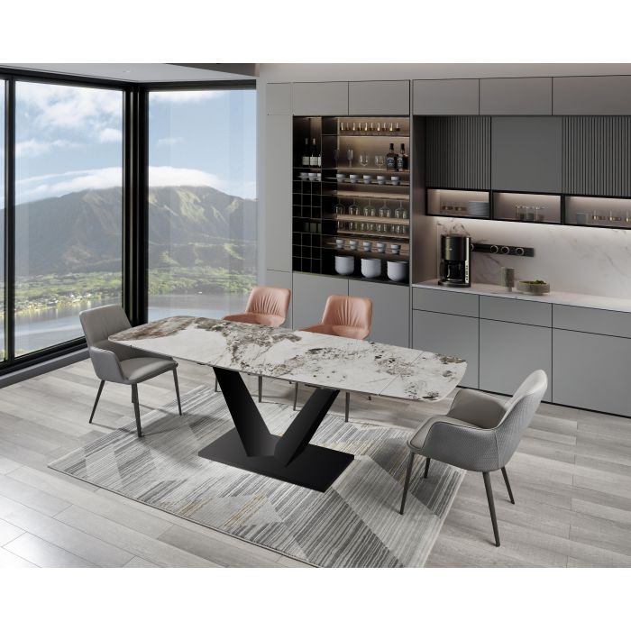 TAVOLO MOD. DUNE ALL. CM 160X90 IN METALLO NERO E PIANO IN VETRO CERAMICA CALACATTA