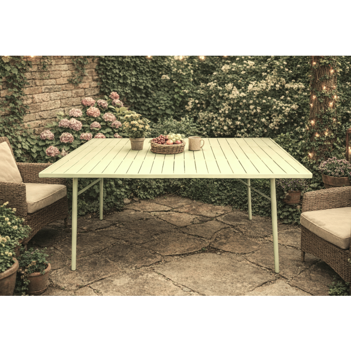 TAVOLO DA ESTERNO MOD. SANTORINI CM 120X80 H. 74 ACCIAIO VERDE MENTA