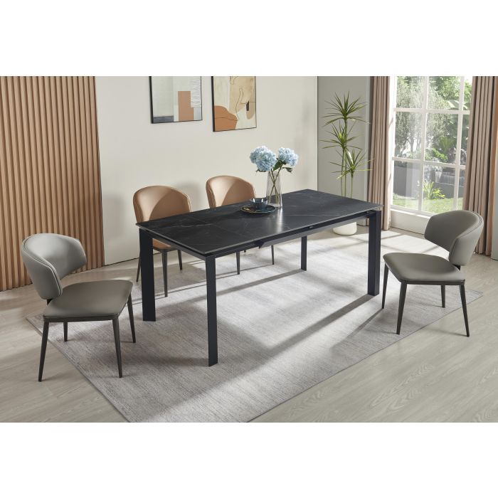 TAVOLO MOD. WATER ALL. CM 140X85 IN METALLO NERO E PIANO IN VETRO CERAMICA NERO CRETA