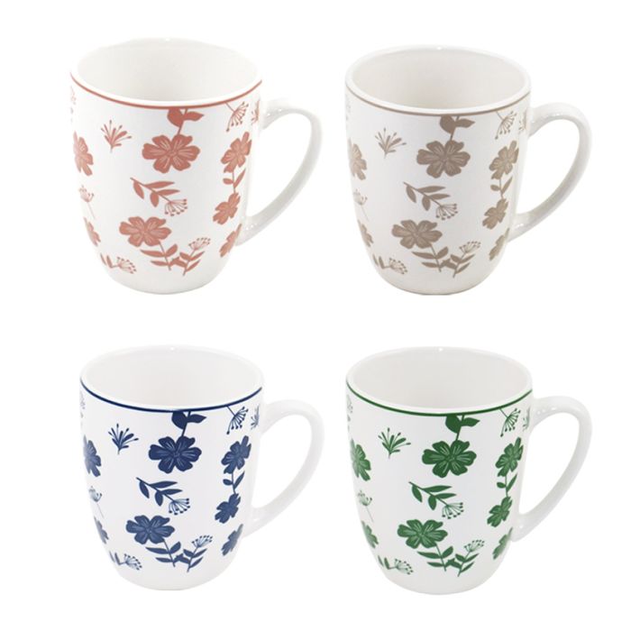 | Note | - Capacità: 330ml ciascuna; - Con decoro floreale "Pad Printing" esterno; - In colori assortiti: blu, rosa, verde e tortora Prodotto Assortito |