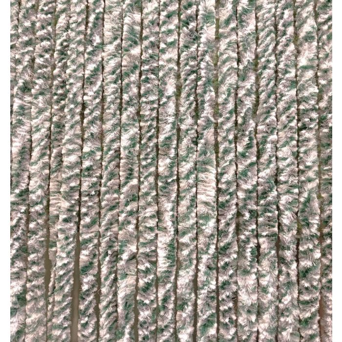Tenda in ciniglia verde/grigio in 100% fibra polipropilenica, 120x230 cm, leggera, silenziosa e antimosche, facilmente lavabile e completa di supporto in plastica, con ciniglia da 38 mm di diametro, completamente riciclabile e piacevole al tatto.