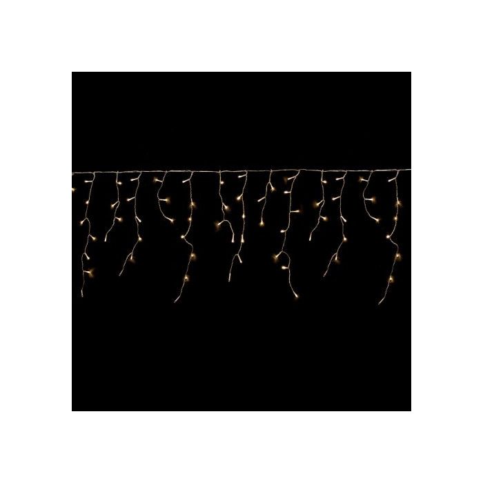 Note | - Lunghezza catena luminosa: 12mt; - Lunghezza cavo di alimentazione: 3mt; - 80 cadute; - Sequenza LED per filo: 3/6/2/7; - Distanza tra un LED e l'altro: 8cm; - Con 8 giochi di luce; - Per uso interno ed esterno; - Con trasformatore |
