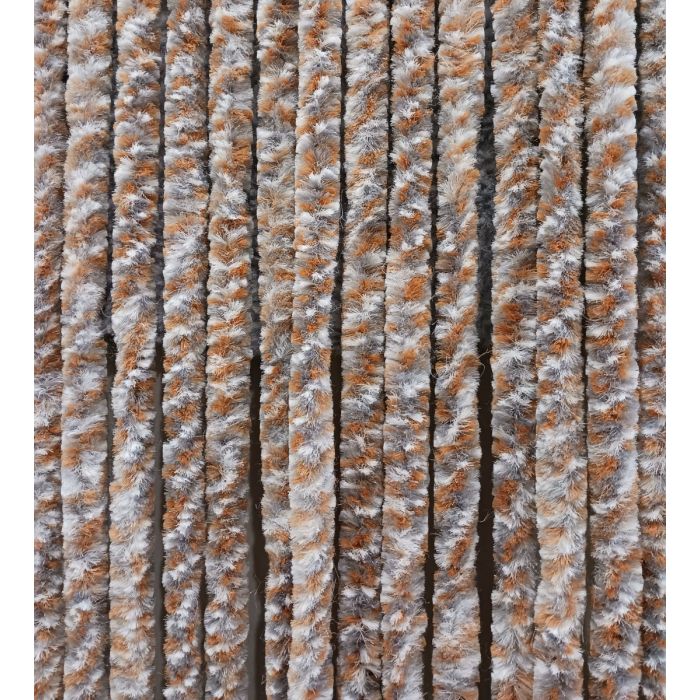 Tenda in ciniglia 120x230 cm (LxH) colore grigio-gialla, realizzata in 100% fibra polipropilenica completamente riciclabile con supporto in plastica, leggera e gradevole al tatto, silenziosa e antimosche, ideale per proteggere gli ambienti da sole, insetti e sguardi indiscreti; pratica e facilmente lavabile, unisce funzionalità ed estetica per ogni ingresso o passaggio.