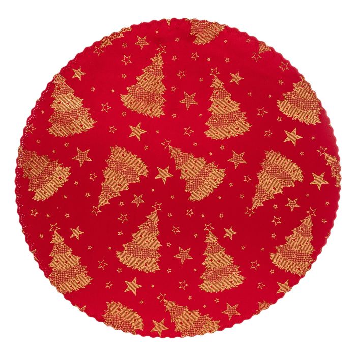 TOVAGLIETTA IN VELLUTO CON ALBERO DI NATALE ROSSA/ORO DIAM. 38CM