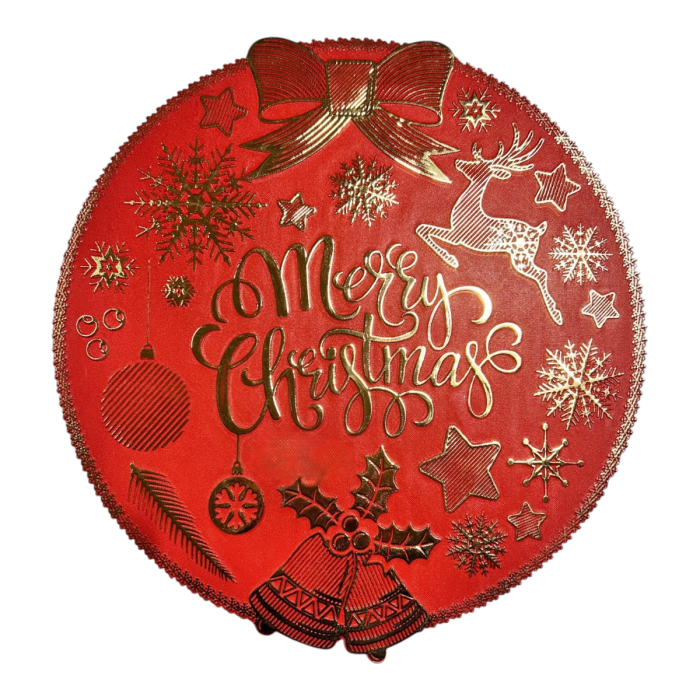 TOVAGLIETTA ROTONDA IN PLASTICA CON DECORO MERRY CHRISTMAS DIAM.38 CM ROSSO/ORO