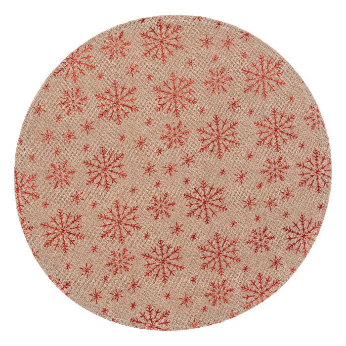 TOVAGLIETTA POLIESTERE EFFETTO JUTA CON FIOCCHI DI NEVE ROSSI DIAM. 38CM