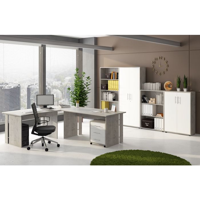 UFFICIO COMPLETO MOD. OMEGA CEMENTO E BIANCO FRASSINATO