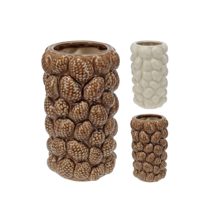 VASO IN CERAMICA CON PIGNE IN RILIEVO H. 28CM ASSORTITO
